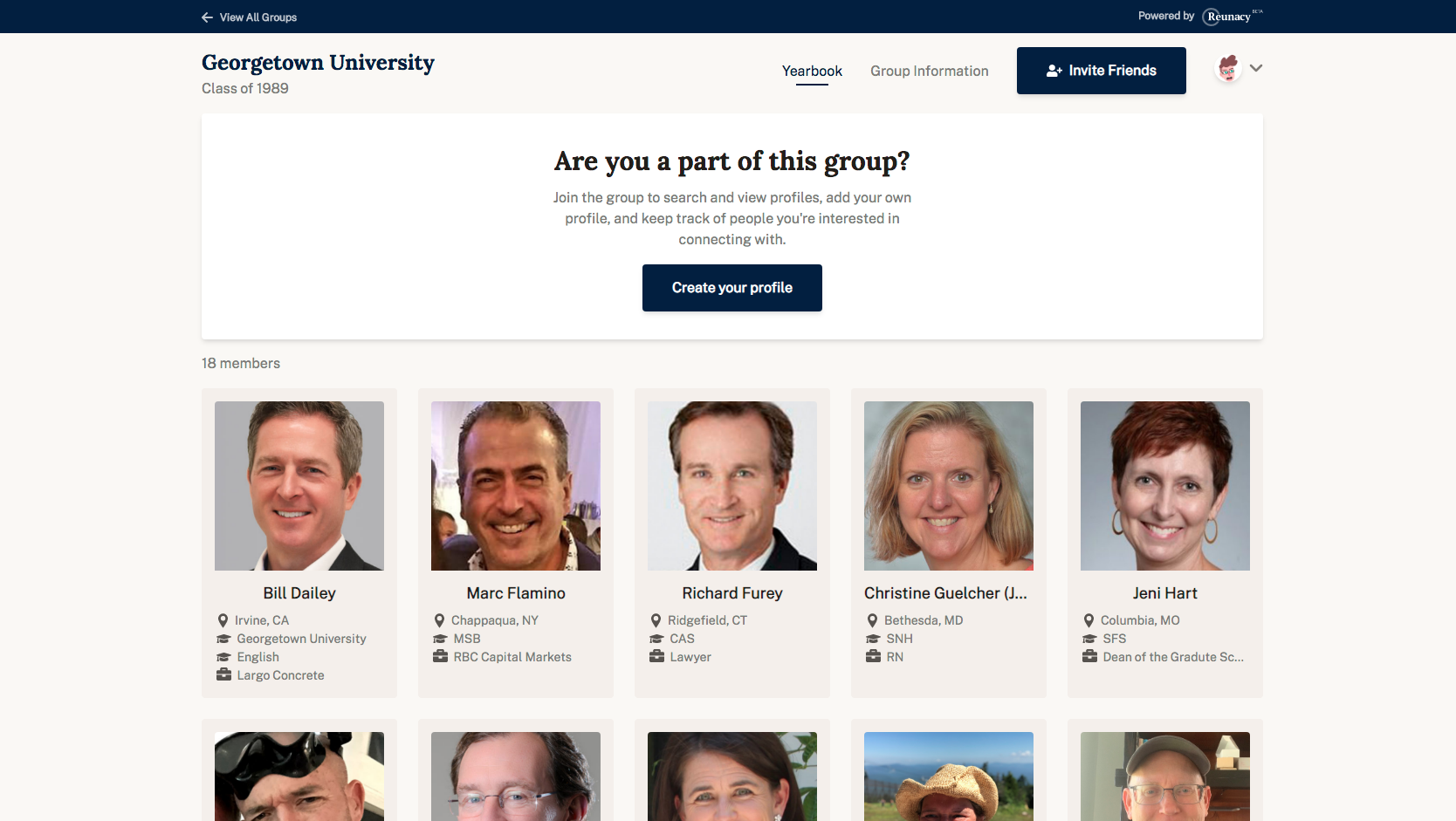 Reunacy is a Vue SPA that lets users create virtual class reunion groups, letting attendees set up profiles with what's currently happening in their life and organizers collect donations for the event.